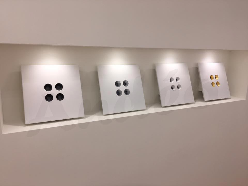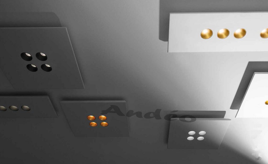 Une collection de plafonniers de forme carré à éclairage en led.